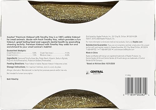 Kaytee Premium Timothy Treat Hideout For Pet Rabbits, Guinea Pigs, and Chinchillas, Large