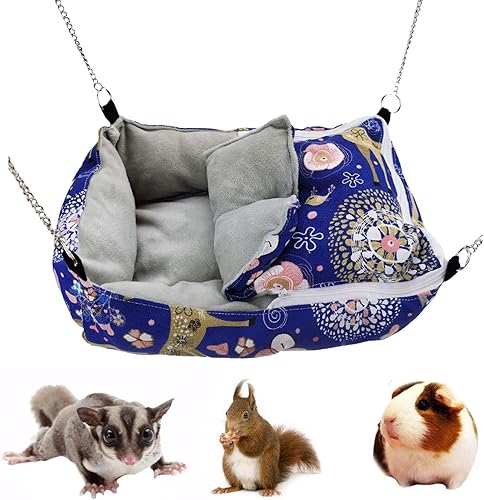 Winter Warm Guinea Pig Rabbit Hedgehog Bed Sugar Glider Squirrel Hamster Hanging Cave Bed Snuggle Sack for Cage Accessories (13.7x9.8x3.1 Inch (Pack of 1), Blue)