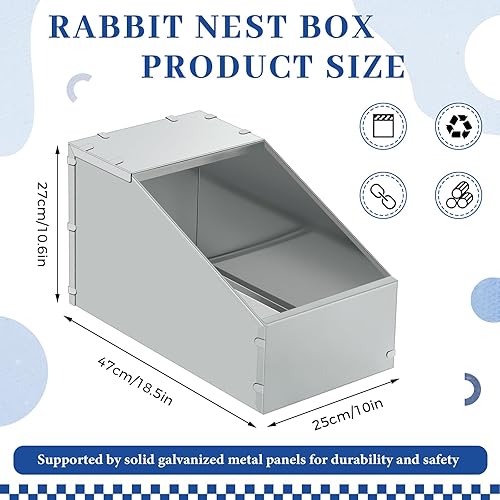 Maxcheck 1 Pcs Galvanized Metal Rabbit Nesting Box Bunny Small Animal Nest with Removable Acrylic Floor Durable Easy to Clean for Indoor Outdoor Use Rabbit Supplies (18.5 * 10.6 * 10 Inch)