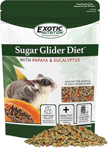 Sugar Glider Diet with Papaya and Eucalyptus (2 lb) - High Protein All Natural Healthy Sugar Glider Food - Nutritionally Complete Staple Diet