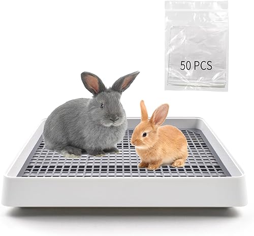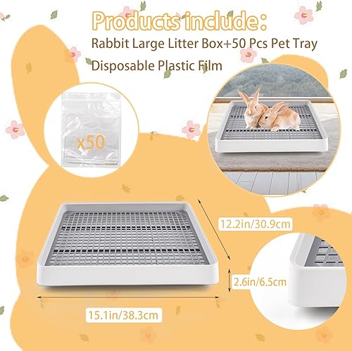 Large Rabbit Litter Box for Cage,Bunny Litter Box Grate Restroom with 50 Pcs Disposable Rabbit Cage Liner Guinea Pig Litter Pan with Grate Rabbits Litter Tray Pet Toilet for Rat Ferret Hamster