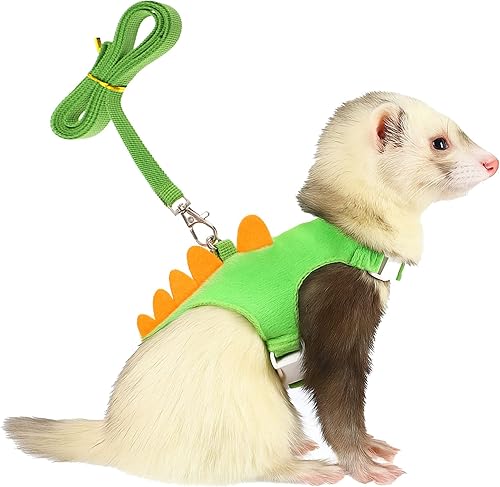 Ferret Harness and Leash Set Small Animals Vest Harness with Safe Bell Dinosaur Shaped Leash Set for Baby Rabbit Guinea Pig Teacup Chihuahua Mouse and Other Small Pet