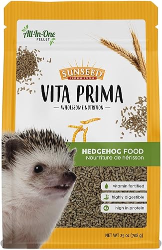 Sunseed Vita Prima Hedgehog Food - High-Protein Poultry, Seafood, and Mealworm Food Blend - Vitamin-Fortified for Happy and Healthy Hedgehogs 1.56 Pound (Pack of 1)