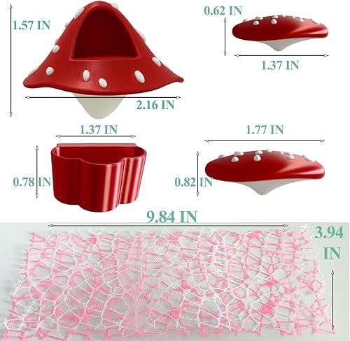 Jumping Spider Accessories Kit – 6 Pcs Set with Mushroom Platforms, Magnetic Feeder Dish, and 2 Spider Webs (Pink & White) for Climbing, Feeding, and Decorating