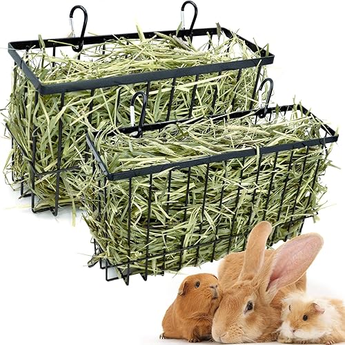 2PCS Rabbit Hay Feeder,Bunny Hay Feeder Rack with Metal Frame for Guinea Pig Chinchilla,Large Heavy-Duty Hay Holder Feeders for Rabbits Guinea Pigs, Small Animal Cage Accessories