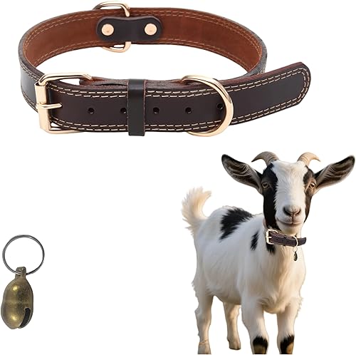 Genuine Leather Goat Collar with Bell – Exquisite Hollow Bell, Adjustable & Durable for Pet Goats and Sheep,Alpacas,Deer (Brown, S-18 (Neck Fits 11"-15"))