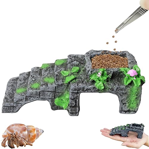 Hermit Crab Climbing Toys with Water Bowl, Hermit Crab Accessories, Resin Material Climbing Ramp with Feeding Tweezer, Tank Decor for Small Reptiles Habitat(5.11 x 2.16 x 1.77inches)