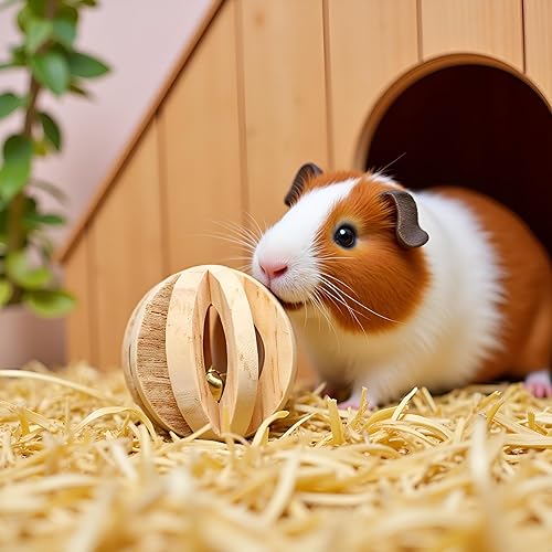 1pc Wood Color Natural Wood Dumbells Unicycle Bell Roller Pet Chew Toy for Guinea Pigs Rat Rabbits,Guinea Pig Toys Boredom,Small Animals Will be Very Happy Toys(No Bark Watermelon Ball)