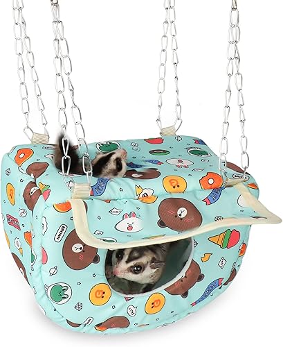 Sugar Glider Pouch Cage Accessories, Small Pet Cage Hammock Guinea Pig Bed Hideout, Rat Hanging Bed with Hideout for Hamster, Squirrel (Fruit White)
