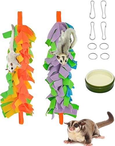 FABMODE 2 Packs Small Pet Toys, Sugar Glider Cage Accessories, Climbing Toys Swing Toys, Suitable for Ferret Birds Parrots Hamster Squirrel Chinchilla Guinea Pigs (with one Water Bowl)