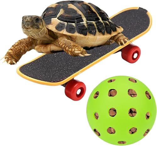 2 Sets of Tortoise Mini Skateboard and Treat Ball, Funny Turtle Skateboard and Dry Food Balls for Small Pets Tortoises, Tortoises Enrichment Toys, Tortoise Habitat Accessories (Dry Food Balls)