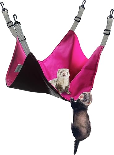 Hamiledyi Ferret Hammock for Cage, Small Animal Guinea Pig Hanging Hammocks Bed Pet Cage Hammock with Plastic Swivel Clips for Ferrets, Rats, Chinchillas, Sugar Gliders, Small Pets (Pink)