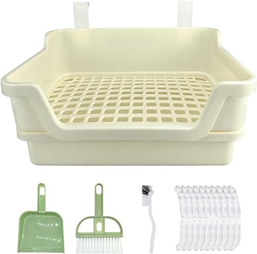 Large Rabbit Litter Box Rabbit Toilet Rabbit Potty Training Corner Huge Bunny Litter Pan with Plastic Grid Deep Dump Tray for Adult Small Animal (White)