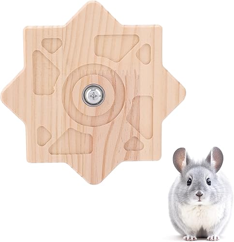 BOXOB Chinchilla Chew Toys, 6.3in Rotating Wood Chinchilla Chew Toys Interesting Chinchilla Cage Accessories Teeth Grinding Wheel for Rabbit Chinchilla Squirrels Guinea Pigs (Star Shape)