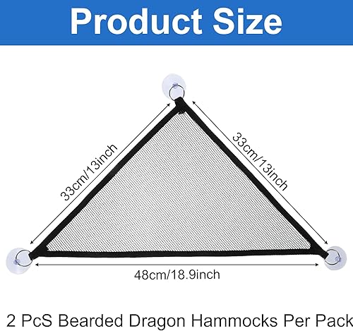 2Pcs Bearded Dragon Hammock, Breathable Mesh Reptile Hammock Lizard Tank Accessories, Triangle Geckos Hammocks for Bearded Dragons, Snakes, and Axolotls, Perfect Beard Dragon Tank Accessories