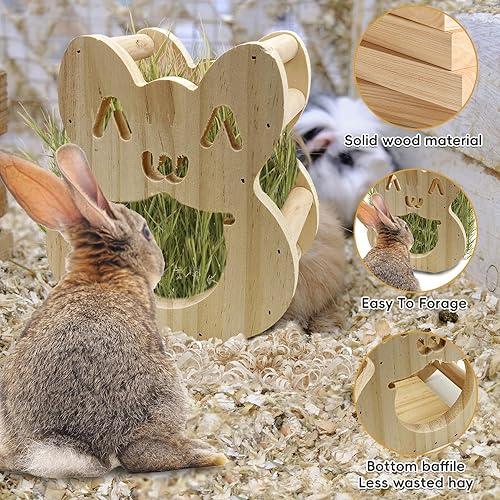 Hamiledyi Small Rabbit Hay Feeder with Wooden Food Feeding Manger Bunny Hay Dispenser Small Animals Grass Holder for Guinea Pig Hamsters Bunny Chinchilla