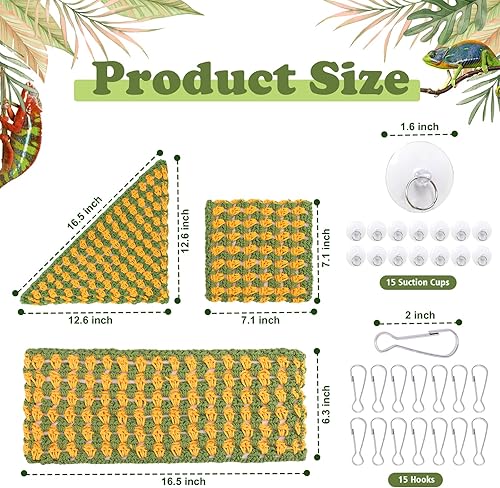 3 Pcs Bearded Dragon Hammock Crochet Reptile Hammock with 15 Suction Cups Hooks Snake Hammocks Hermit Crab Hammocks Small Reptile Swing Bearded Dragon Tank Accessories for Lizard Chameleon Gecko Snake