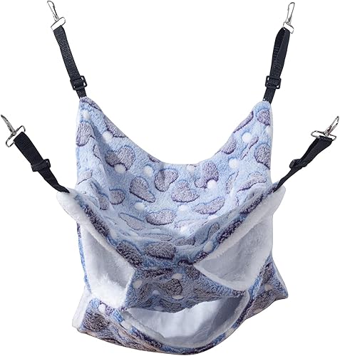 WOWOWMEOW Small Animal Warm Flannel Hammock Cage Hanging Triple Bunkbed Hideout for Rat Ferret Hamster Sugar Glider Squirrel (Leopard-Black)