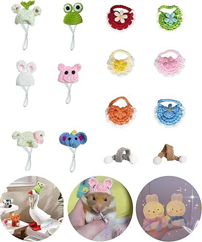 16 PCS Desk Goose Outfits,Fits 7 Inch Magnetic Desk Goose & Hamsters,Ideal for Classroom/Party/Decoration,Cute Knitted Hats & Bibs Set(Animal)