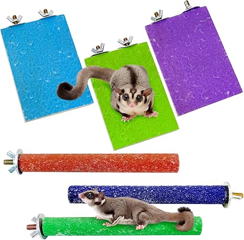 BNOSDM Sugar Glider Toys Wood 6 Pcs Hamster Climbing Cage Steps with Colorful Sand Sharpening Claws Platform Small Animal Scratching Snadpaper for Cages Suitable for Squirrels Chinchillas Rats