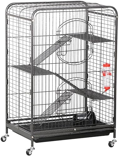 Yaheetech Metal Rolling Cage for Adult Rats/Ferrets/Chinchillas Small Animal Cage w/Removable Ramp & Platform Black