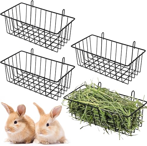 4 Pcs Rabbit Hay Feeder, Heavy Duty Metal Rabbit Hay Rack with Hooks Small Animal Cage Accessories Bunny Hay Feeder Holder Pet Grass Rack for Guinea Pig Chinchillas