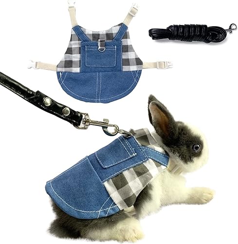Vehomy Rabbit Harness and Leash Small Animal Clothes for Rabbit Guinea Pig, Bunny Plaid Harness Leash Guinea Pig Blue Denim Black and White Plaid Dress for Kitten Chihuahua and Other Small Animals M