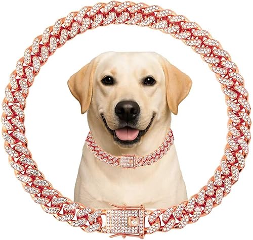 Dog Chain Designer Gold Crystal Pet Collar Cuban Link Chain with Secure Buckle Luxury Adjustable Necklacefor Small Medium Large Dogs Cats(Glod 18inch)