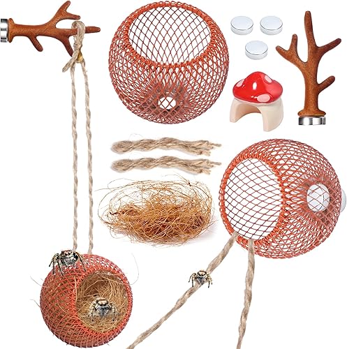 Jumping Spider Hide Enclosure Habitat with Decoration Anlter, Mushroom Decor Pet Spider Hideout Nest Climbing Pet Spider Hideout Enclosure Accessories