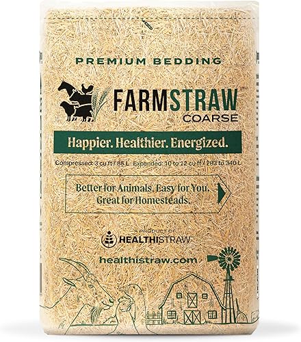FarmStraw Coarse Cut, 3 cu ft (25 lb) Expands to 10+ cu ft – Wheat Straw Bedding for Homesteads, Hobby Farms & Small Pets – Dust-Free, Absorbent, Fluffy, Insulating, Sustainably Sourced