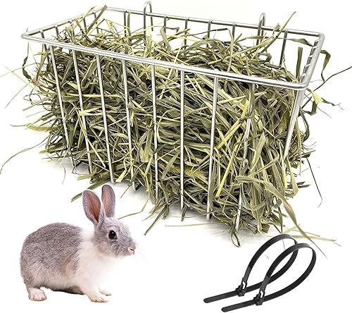 Rabbit Hay Feeder, Stainless Steel Hay Rack for Cage Pet Hay Dispenser Holder Heavy-Duty Metal Super Durable Grass Rack for Adult Rabbit Guinea Pig Chinchilla Bunny 9.8x5.1x5.9 Inch