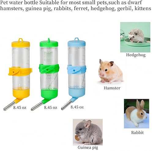 3 PCS 8.45 oz Hamster Water Bottles, No Drip Hanging Small Animal Drinking Bottles,Cage Water Bottles for Hedgehog/Squirrel/Hamster/Gerbil/Guinea Pig/Rabbit