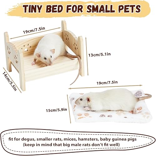 Wooden Rat Bed, Rat Hammock for Cage Chew Proof, Pet Rats Cage Accessories Hanging Bed, Safe and Cozy Rodent Hammock with Removable Nest Mat for Small Animal Hamsters Mice Sleeping