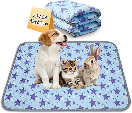 Reusable Guinea Pig Cage Liners, 47" x 24" (Pack of 2) Washable Pee Pads , Super Absorbent & Waterproof & Anti-Slip Pet Bedding Liner for Dogs, Bunny, Small Animals (Blue)