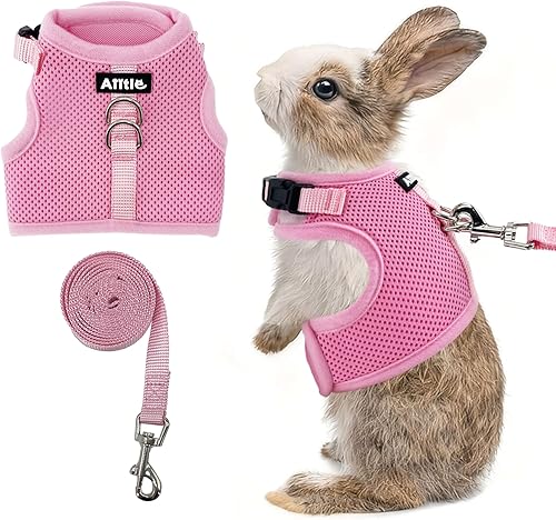 AIITLE Breathable Bunny Harness and Leash Set, Adjustable Straps & Magic Tape Design, Comfort Fit Vest for Puppies, Cats, Squirrels, Rats, Bunnies, Ferrets, Outdoor Walking, Pink S