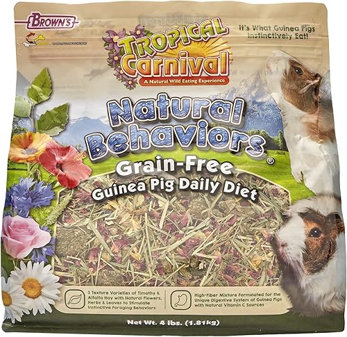 Tropical Carnival Natural Behaviors Grain-Free Guinea Pig Food – 4 Pounds, High-Fiber Timothy Hay Blend with Flowers & Leaves, Supports Natural Foraging, Chewing, and Digestive Health, Added Vitamin C