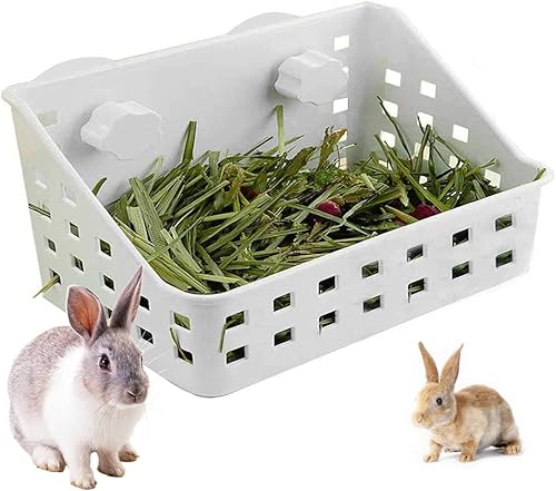 kathson Rabbit Hay Feeder Small Hay Manger Less Wasted Grass Holder Rack Food Dispenser Small Animal Plastic Bowl for Rabbits Bunny Guinea Pigs Rat Chinchilla(Blue)