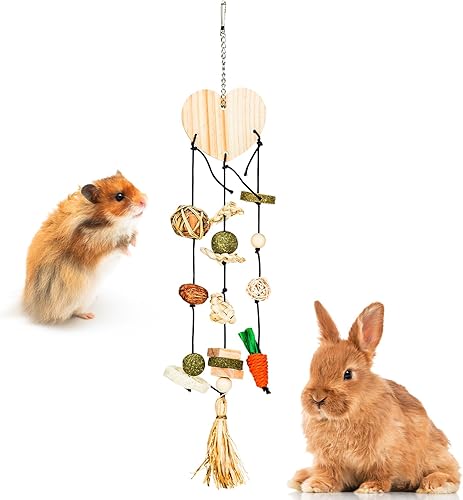 tifanso Rabbit Chew Toys for Teeth, 3 Strings Bunny Chew Toys and Treats, Guinea Pig Cage Hanging Treats with Different Shape, Natural Hamster Stuff Handwoven Cage Accessories for Bunny, Chinchillas
