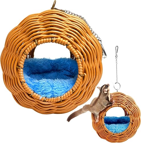 BNOSDM Sugar Glider Nest, Pet Glider Cage Sleep Nesting Squirrels Playing Hideout Hanging Hammock with Warm Cotton Pad Small Animal Cage Accessories for Marmosets Hamsters (Double Holes)