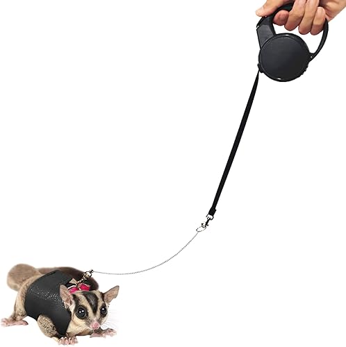 La La Pet Adjustable Retractable Sugar Glider Harness and Leash Set for Small Animals - Hamster, Outdoor Activities - Metal Chain, Red, M