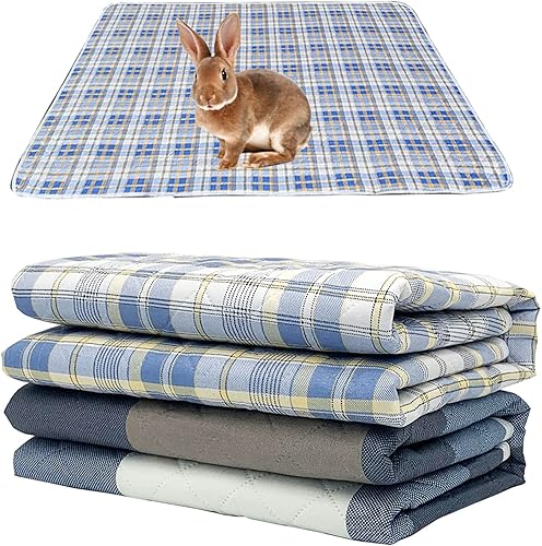 Rabbit Cage Liners, Guinea Pig Bedding Pads Bunny Cage mats Waterproof Reusable Washable Small Animals Cage Liner (4Pcs) (Small Size)