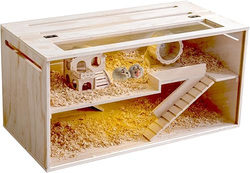 40in Hamster Cage for Rats, Hamsters, Gerbils, and Other Small Animals, Wooden Chewproof,with Openable Top and Large View Acrylic Panels(40" L x 20" W x 20" H)