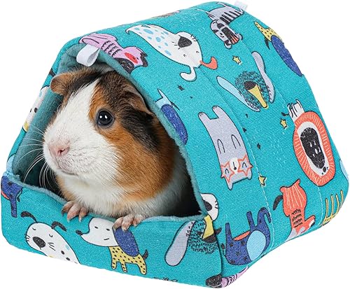 Guinea Pig Hideout, Guinea Pig Bed House Warm Washable Rabbit Hideout with Non-Slip Bottom Small Animal Cages Accessories for Hamsters Hedgehogs Bunny Stuff (Blue)