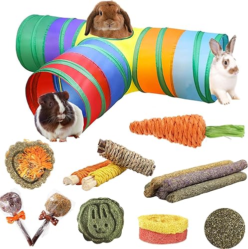HERCOCCI Bunny Tunnels and Tubes, Collapsible Rabbit Hideout Tunnel Small Animal Activity Toy for Rabbits Bunnies Guinea Pigs Ferrets Kitty Puppy