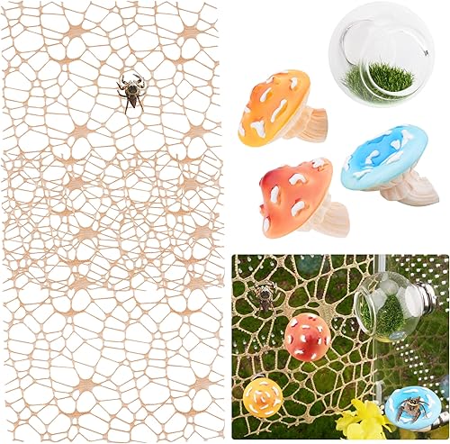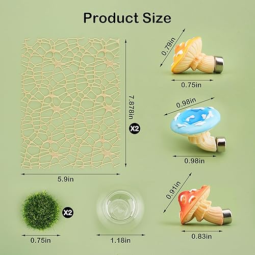 6pcs Jumping Spider Accessories Glass Ball Hide Habitat Mushroom Platform Spider Webbed Moss Ribbons Decorating Jumping Spiders Enclosure Accessories for Climbing Resting and Exploration