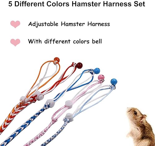 Hamster Harness 5 Pieces Adjustable Small Animal Bell Harness Rope Harness for Lead Walking Pet Gerbil, Rat, Mouse, Hamster Harness