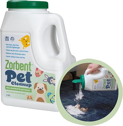 Zorbent Pet Accident Cleanup – Odor Remover for Dog & Cat Messes. Absorbs 1 Gallon. Pet-Safe Cleaner for Urine, Vomit, Poop & Accidents on Hardwood, Tile, Vinyl, Concrete, Short Carpet & Rugs, 5 qt