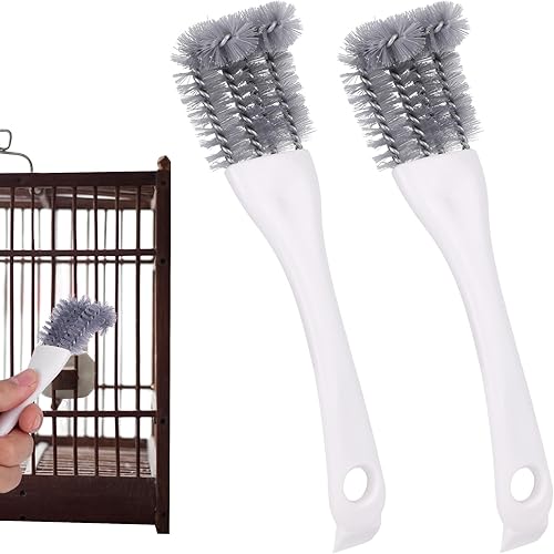 2pcs Bird Cage Cleaner with Long Handle, Bird Cage Brush Droppings Removal Tool for Small Animals Remover Parrot Bath Perches Cleaning Accessories