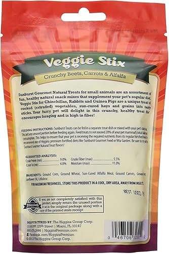 Higgins 3 Pack of Sunburst Veggie Stix, 4 Ounces Each, Gourmet Natural Treats for Guinea Pigs Rabbits and Chinchillas
