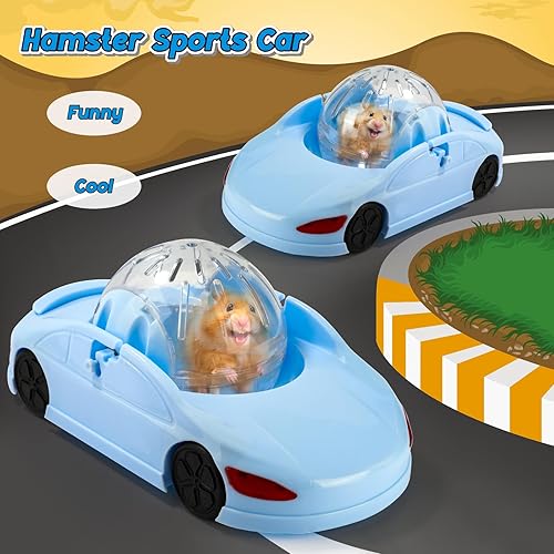 Hamster Ball Car Wheel Exercise Toy, Rolling Ball Sports Car with Detachable Transparent Ball and Banana Bed House for Small Pet - Safe, Breathable and Funny